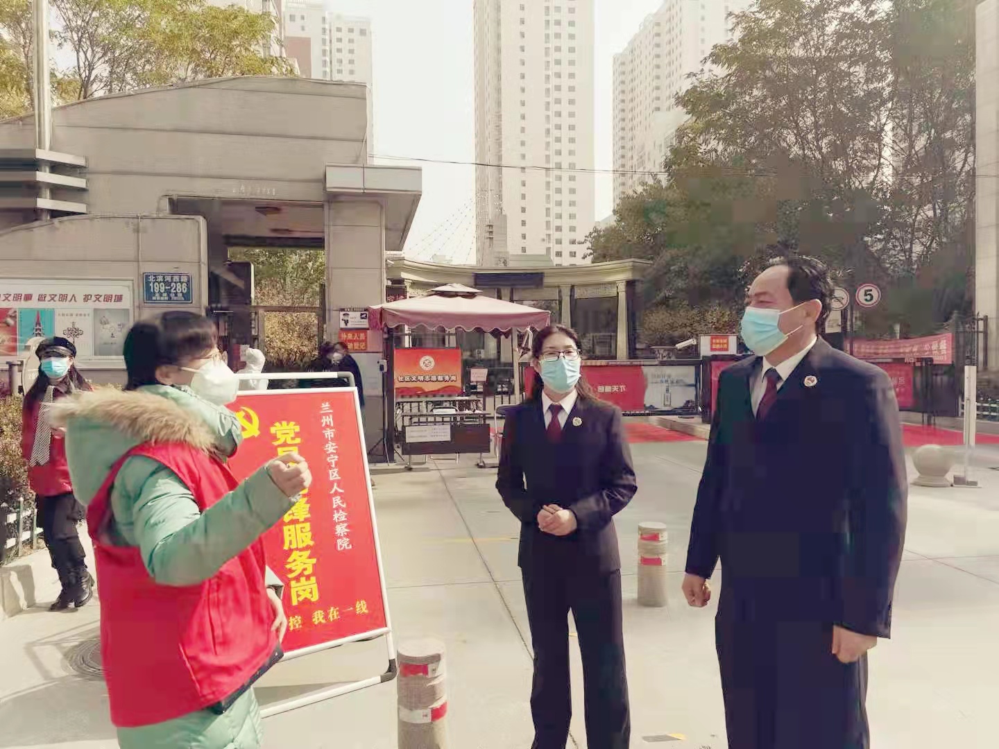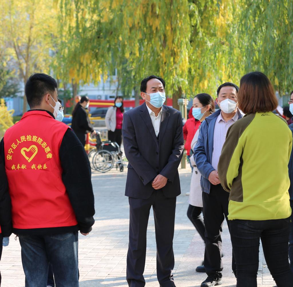 10月20日以来,面对严峻复杂的疫情防控形势,安宁区检察院坚决落实区委疫情防控工作要求,第一时间派出30名40岁以下青年干警参与全区核酸检测辅助工作,并每天抽调12名干警下沉北岸公馆、实创现代城开展志愿防疫执勤工作。院党组始终将防疫工作作为当前头等大事,每天由1名班子成员带班,负责当天整体防疫工作,在北岸公馆、实创现代城以及培黎街道核酸采样点与执勤干警坚守在一线。