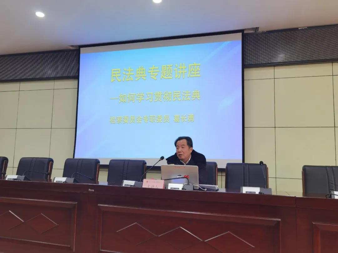 为进一步贯彻习近平法治思想,学习好、理解好、实践好民法典,增强全院干警履职能力,提升检察工作水平,近日,安宁区检察院开展《如何学习民法典》的专题辅导讲座,主讲人为院检委会专职委员葛长勇。