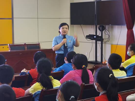 最后,检察官引导同学们认识到在同龄人中逞强斗狠不算本事,在危难时刻敢于挺身而出才值得敬佩。爱国不分大人小孩,作为即将升入初中的学生,要保护好自己,健康成长,每天多学一分学问,多养一分正气,将来就能为国家多做一分事业,多尽一分责任。同学们作为国家的未来、民族的希望,要传承好中华民族优秀传统文化,做有志向、有梦想,爱学习、爱劳动、爱祖国的中国少年。