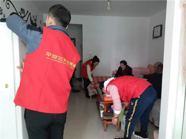 家住乱庄社区六号楼的刘莲芳奶奶今年72岁,常年患有眼疾,丈夫手脚残疾行动很不方便。我院干警在得知这一情况主动联系社区工作人员为其上门打扫卫生,提供力所能及的帮助。随后检察干警志愿者与社区工作人员向辖区群众发放“特色兰州”和“扫黑除恶”宣传册,在积极宣传兰州的特色文化的同时,为群众普及“扫黑除恶”法律知识,并现场答疑解惑、提供法律咨询,帮助群众了解法律知识,提高遵纪守法意识。