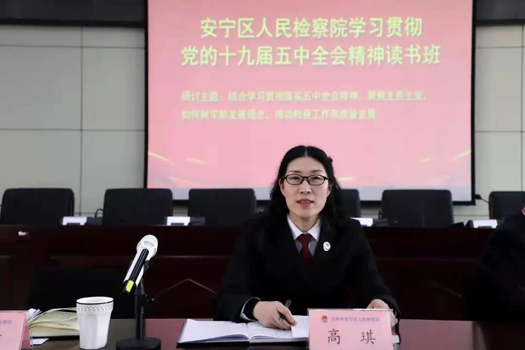 第一检察部主任王艳芳谈到要将十九届五中全会精神落地落实到每一个案件每一项工作中,强化首位意识,坚持“学在前列”;做到“立检为公,执法为民”;勤奋工作,创造一流检察业绩;廉洁从检,切实端正工作生活作风。