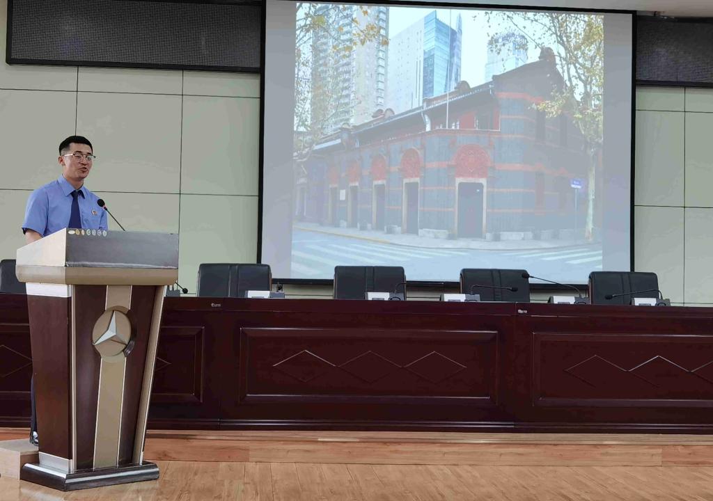 苏利军同志以《一大首聚开天辟地》围绕党的一大的召开始末、会议讨论焦点、分歧以及党的生日由来等方面,讲述了系列党史故事,提出红船精神是中国革命精神之源,号召大家担负起历史使命并将此精神传扬下去。