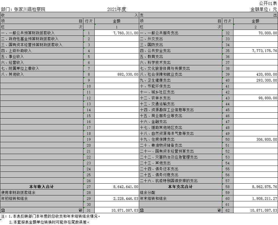 第二部分 2021年度部门决算表