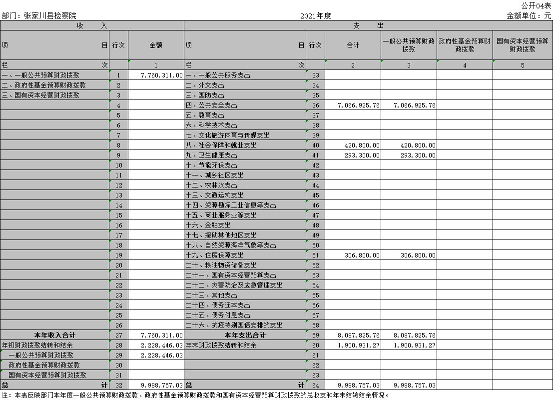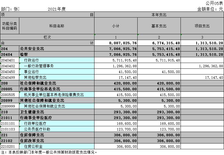 2021年度张家川县检察院部门决算