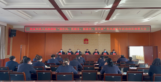 2月24日下午,张家川县约彩365软件官方下载_365bet最新备用网站_365速发登录入口召开“强作风、优服务、抓落实、促发展”作风建设年活动动员大会。县委常委、政法委书记高文同志到会指导,会议由县检察院党组书记、检察长彭爱铭主持,全体干警参加。