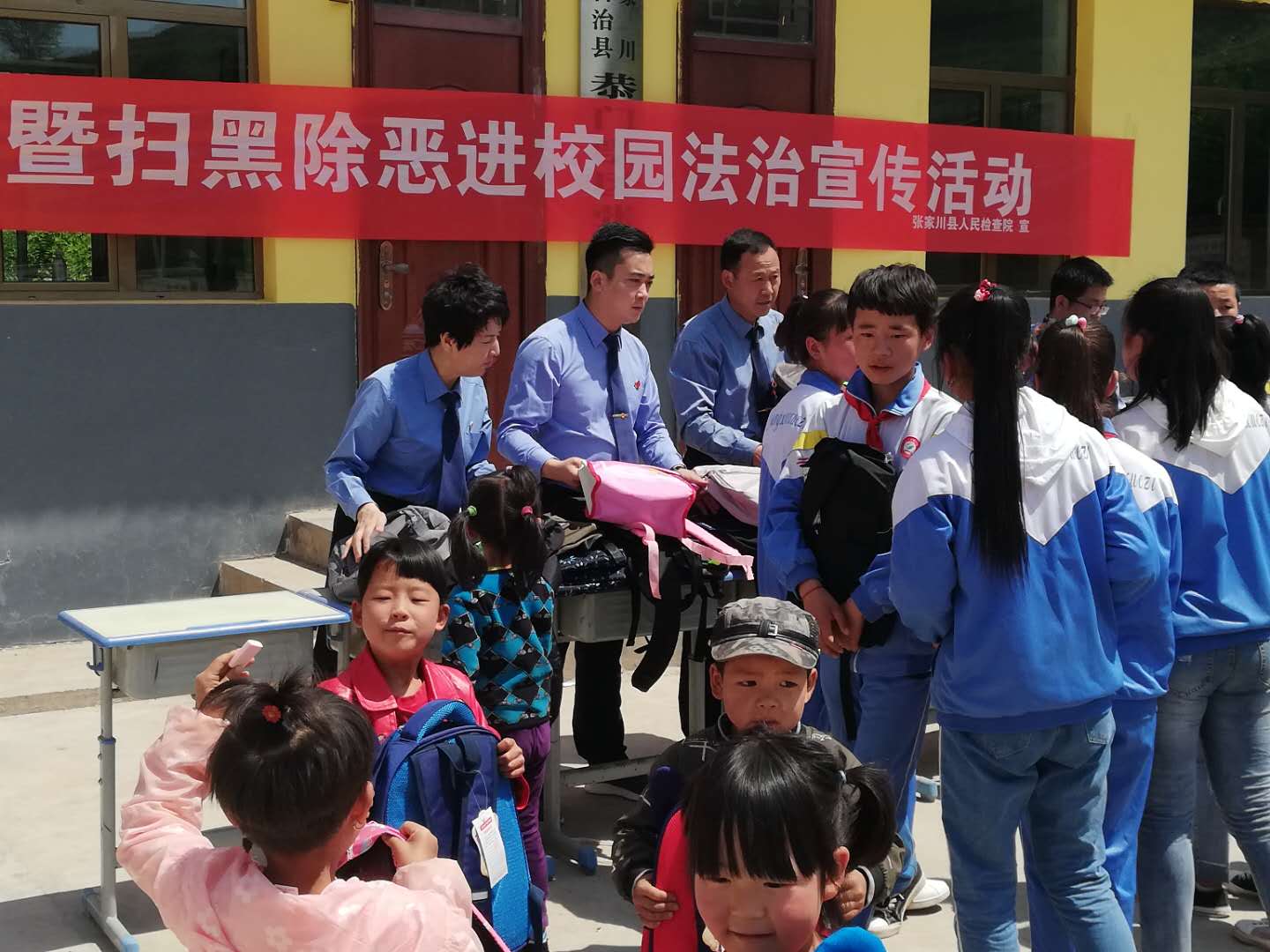 5月31日,张家川县约彩365软件官方下载_365bet最新备用网站_365速发登录入口按照省、市检察院的部署要求,由院领导带队,分赴4个乡镇23所学校,集中开展以“扫黄打非·护苗2019”和解读高检院“一号检察建议”为主要内容的未检检察开放日活动,并为6所学校贫困儿童和留守儿童捐赠学习用品,让山区孩子过上不一样的“六一”儿童节。
