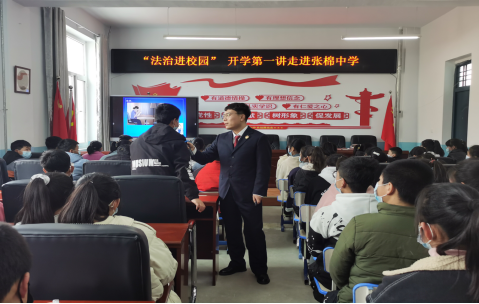 新学期伊始,为持续深入贯彻落实“一号检察建议”,进一步强化未成年人保护工作,提高未成年人法治意识,切实增强未成年人自我保护能力,预防未成年人网络犯罪。2022年3月3日,张家川县约彩365软件官方下载_365bet最新备用网站_365速发登录入口未成年人检察工作办公室干警走进张棉中学,开展“预防未成年人网络犯罪”法治宣讲活动,为学生们送上“法治大礼包”。