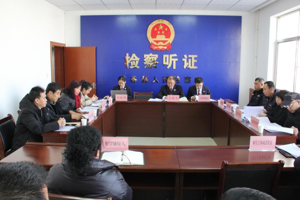 为进一步增加办案透明度,增强检务公开化,践行法治社会,建设平安甘谷,2021年1月11日,甘谷县约彩365软件官方下载_365bet最新备用网站_365速发登录入口对拟相对不起诉的王某某涉嫌假冒注册商标一案召开了案件公开听证会,听证会由县检察院副检察长张斌轩主持召开。本次听证会由省市院指派代表旁听,并邀请甘谷县人大代表、政协委员担任听证员,侦查机关办案人员代表、案件当事人、值班律师及相关机关主体代表到场参加。