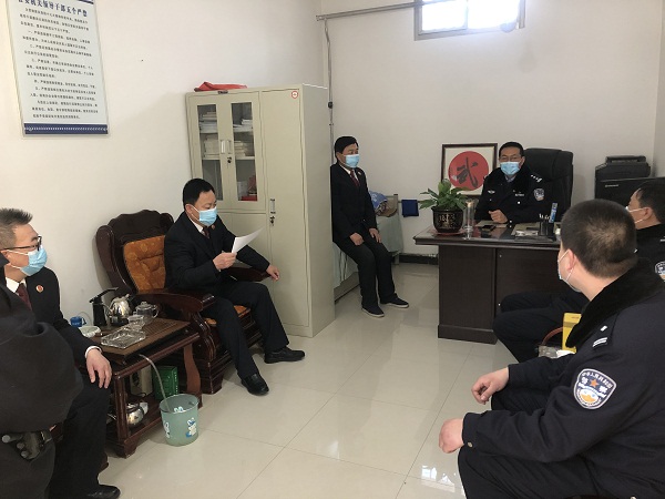 姜检察长一行首先向我院驻看守所检察人员详细询问了近期甘谷县看守所在押人员数量和监管情况,翻阅了《驻所检察工作日志》,查看了驻所检察网上办公系统,对驻所检察室工作提出了许多建设性的意见和建议。由于目前正处于“新冠肺炎疫情防控”期间,姜检察长通过甘谷县看守所视频监控系统,对在押人员的体表健康状况进行全面检查;专门找甘谷县看守所部分管教民警进行谈话,详细了解在押人员生活、卫生、学习等方面的情况;通过查看县看守所巡控室、值班室录像,掌握县看守所的值班巡视、安全防范措施落实和看守所民警履职尽责等方面的情况。