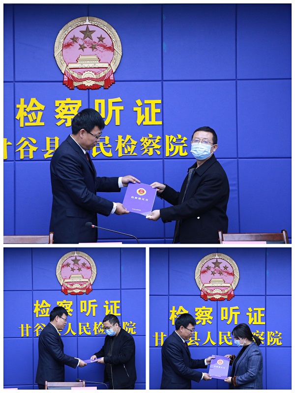 4月15日,甘谷县检察院针对不同领域出现的安全生产风险、金融风险案件先后召开公开听证会。听证会由县院检察长邵新建主持,人大代表、政协委员、人民监督员及县住房和城乡建设局、应急管理局、中国农业银行股份有限公司甘谷县支行代表参与听证。