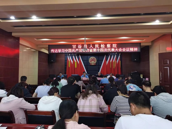5月31日,甘谷县检察院召开全院大会,专题传达学习中国共产党甘肃省第十四次代表大会会议精神,党组书记、检察长邵新建主持会议。