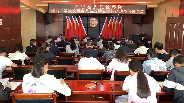 为深入推进全院“强作风、优服务、抓落实、促发展”作风建设年活动,近日,甘谷县检察院召开整治“学风文风会风”问题专项行动动员部署会议,传达《甘谷县整治“学风文风会风”问题专项行动实施方案》,安排部署具体工作。