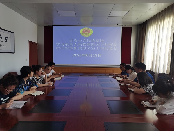 6月13日,甘谷县检察院组织召开学习全国检察机关办公室工作意见座谈会,会议由副检察长蒋卫东主持,办公室及政治部全体干警参加。