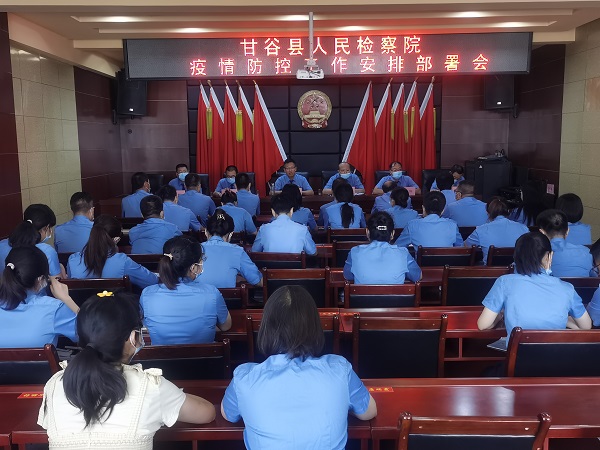 针对甘谷县疫情防控的严峻形势,7月13日上午,甘谷检察院召开新冠肺炎疫情防控工作部署会,会议由党组书记、检察长邵新建主持,其他院领导及全院干警参加了会议。