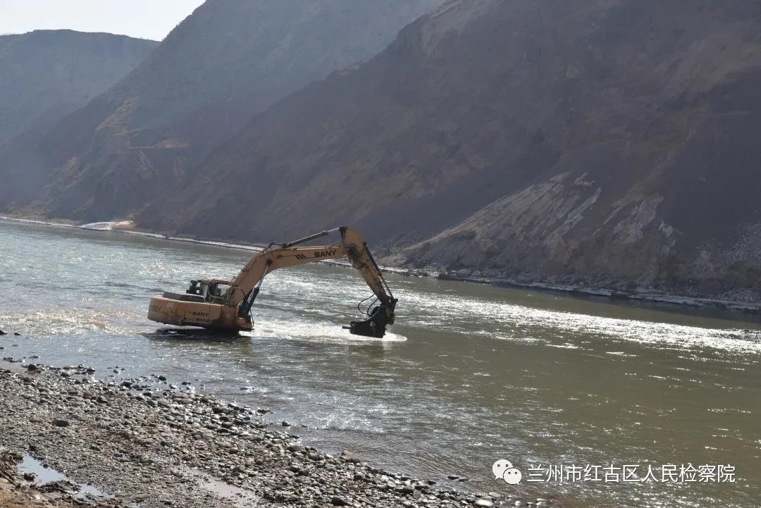 2021年2月23日,随着挖掘机轰隆隆的响动,湟水河河道窑街矿务局双氰胺厂废弃厂区段中的大石头被破碎、清理,这也宣告着红古民和联合办理的首起公益诉讼案件圆满办理。