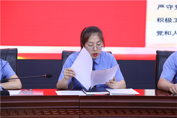 集体学习后,贾虎胜同志以《深入学习贯彻省第十四次党代会精神 引领走好检察新“赶考”之路》为题开展宣讲。党课立足于在坚持党的绝对领导上体现新担当、在服务大局上展现新作为、在司法为民上谋求新发展、在推进改革创新上实现新突破、在提升履职能力上呈现新气象五个方面,紧紧围绕学习贯彻省第十四次党代会议精神,不断增强做好检察工作的责任感、使命感、紧迫感,为全体党员讲了一堂生动的专题党课并对全体党员提出了明确要求。