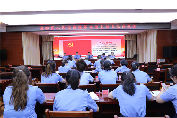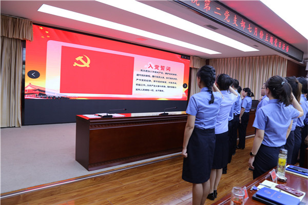 活动在庄严的入党誓词中拉开帷幕,第二党支部全体党员同志高举右拳,重温入党誓词,回顾初心,感悟初心,铿锵有力的声音传达出了共产党员的自豪感与使命感,全体党员再一次接受了党性的洗礼、理想信念的教育,展现了全体党员为党和人民的事业奋斗终身的不变理想和追求。
