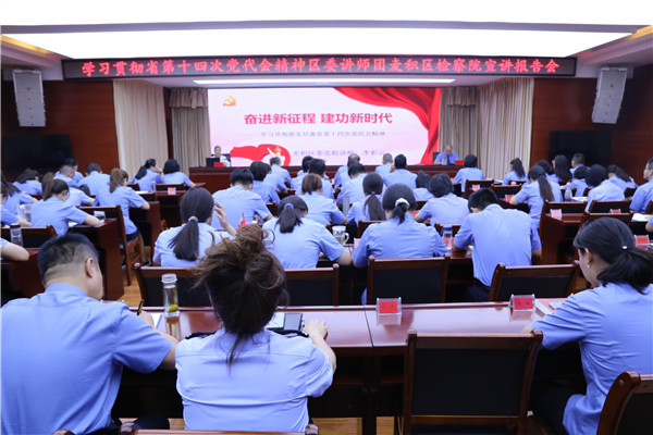 宣讲会上,李彩云老师以《奋进新征程建功新时代——学习贯彻落实甘肃省第十四次党代会精神》为题,分别从会议的基本概况、省第十三次党代会以来的五年、今后五年的总体要求和奋斗目标等五个方面,对省第十四次党代会精神作了全面系统的解读,此次宣讲内容丰富,重点突出,思想深刻,具有较强的理论性和指导性,对全院干警准确理解、全面掌握省第十四次党代会精神具有重要意义。宣讲会结束后,干警纷纷表示,要以此次宣讲报告会为契机,深化对省第十四次党代会精神的把握和学习,进一步提高政治站位,把学习好、宣传好、贯彻好省第十四次党代会精神作为当前的重大政治任务。紧密结合检察工作实际,从省第十四次党代会精神中汲取智慧力量,以学习贯彻省第十四次党代会精神的实际成效迎接党的二十大胜利召开。