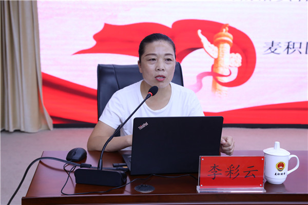 8月4日,麦积区约彩365软件官方下载_365bet最新备用网站_365速发登录入口组织开展了学习贯彻省第十四次党代会精神宣讲报告会,区委党校讲师李彩云老师在宣讲会上作了专题辅导,会议由党组成员、政治部主任杜丰主持,全院干警参会。