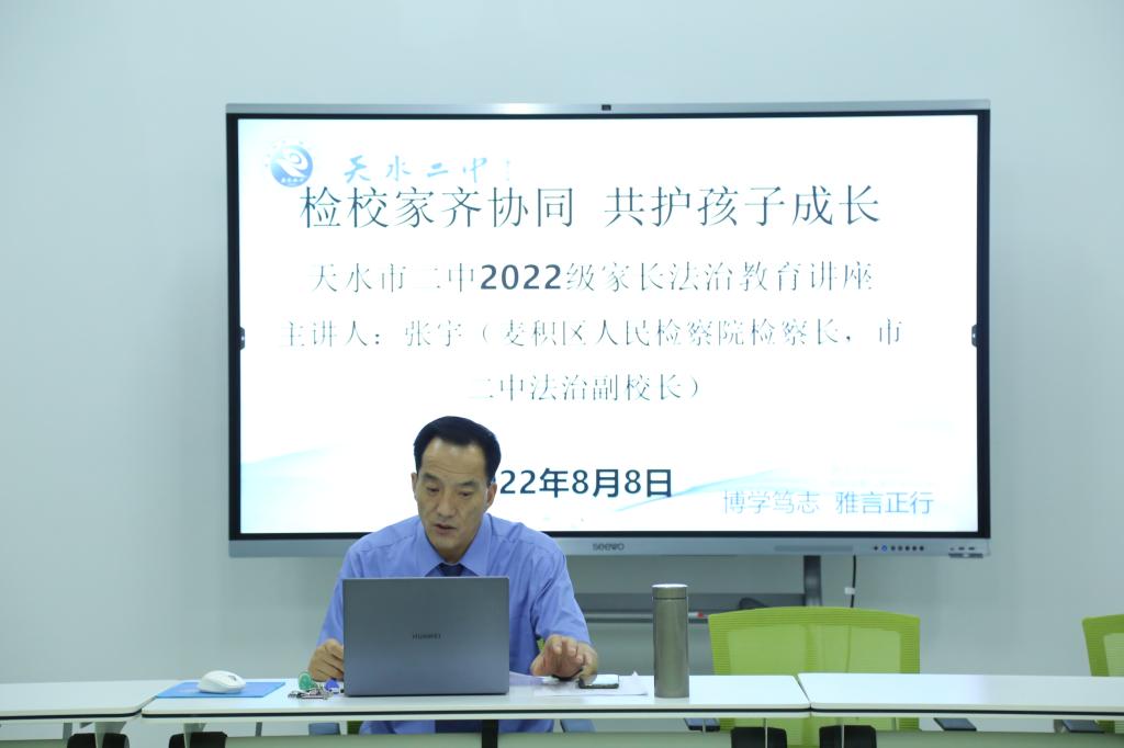 家长是孩子的第一任老师,家庭是孩子的第一任课堂,为进一步加强家庭教育指导工作,凝聚检察机关、学校以及家庭三方共同保护未成年人的合力,8月8日,麦积区约彩365软件官方下载_365bet最新备用网站_365速发登录入口党组书记、检察长、天水市第二中学法治副校长张宇走进天水市二中,通过“钉钉联播”的方式,为即将步入高一年级的学生家长讲授了一堂及时有效、内容丰富的法治课,引导家长以爱育爱、依法带娃,不断提高家庭教育能力。