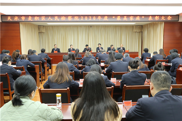 为发扬中华民族传统美德,践行社会主义核心价值观,大力弘扬中华民族“和谐家风”传统美德。11月2日,麦积区约彩365软件官方下载_365bet最新备用网站_365速发登录入口召开2020年度“最美家庭”表彰大会,会议由党组成员、政治部主任杜丰主持,全院干警80余人参加了会议。