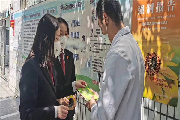 麦积区院未检干警走进广场、深入辖区内酒店、校外培训机构、社区、医院等密切接触未成年人的机构开展强制报告制度的法治宣传。通过发放宣传资料、解答法律问题咨询等方式广泛宣传强制报告制度的相关规定,倡导广大密切接触未成年人的机构积极参与到未成年人保护工作中来,及时报告、共同监督,让侵害无处遁形,共同为未成年人筑起预防侵害的“防火墙”。