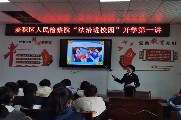 近年来,儿童遭受性侵害案件频发,面向中小学生普及预防性侵害知识越来越重要。为增强青少年儿童人身安全防范和法律意识,维护孩子们的人身安全免受不法分子的侵犯,3月上旬,麦积区约彩365软件官方下载_365bet最新备用网站_365速发登录入口检察人员走进麦积区马跑泉中心学校、甘泉中心学校、党川中心学校等25所小学,以“法治进校园 开学第一讲”为主题,为同学们上了一堂安全自护法治课。