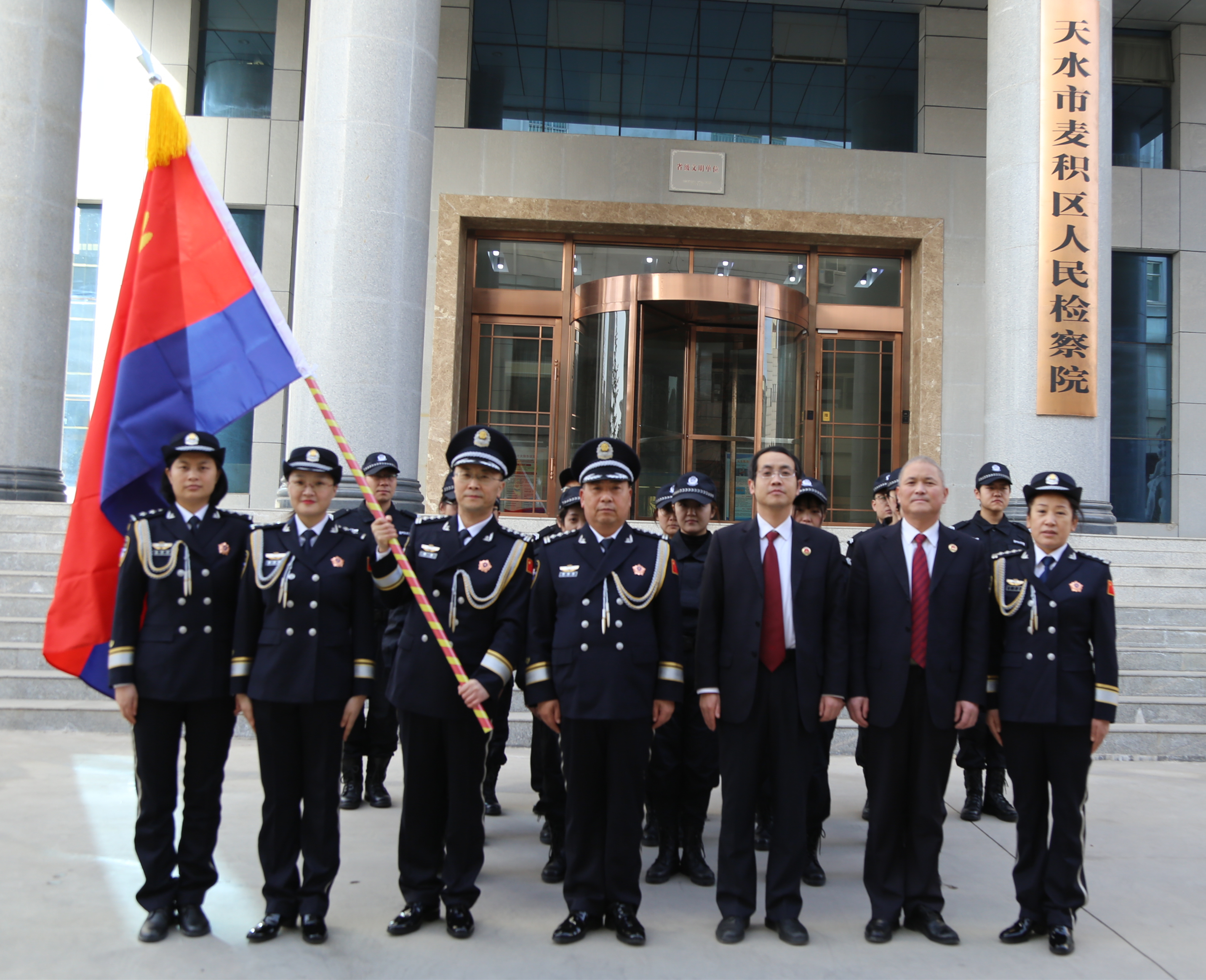 通过举行此次授旗仪式,法警队员备受鼓舞,振奋精神,纷纷表示要擎举高扬的警旗,牢记初心使命,坚定理想信念,践行党的宗旨,筑牢忠诚警魂,服务检察办案,保障办案安全,推进司法警察队伍革命化、正规化、职业化、专业化建设,为麦积检察事业创新发展提供强有力的警务保障。