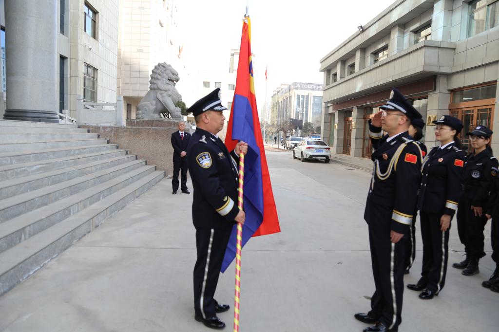 旗帜引领方向,旗帜凝聚力量。为进一步熔铸忠诚警魂,激励使命担当,1月10日,在第三个“中国人民警察节”到来之际,麦积区约彩365软件官方下载_365bet最新备用网站_365速发登录入口隆重举行司法警察授旗仪式。院党组成员、副检察长蒲成一、党组成员、政治部主任杜丰参加仪式,院应急法警大队全体成员出席授旗仪式。