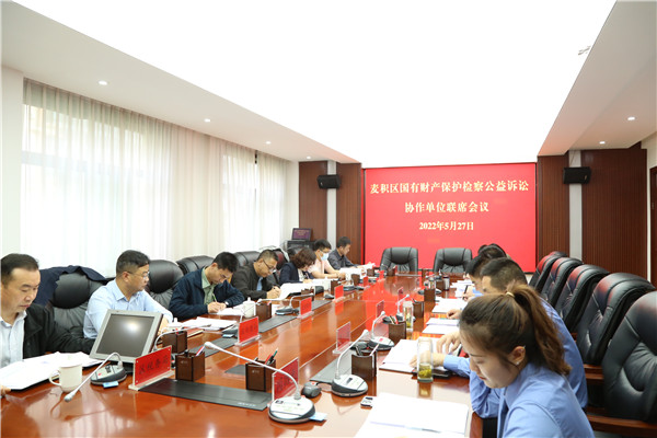 为充分发挥检察公益诉讼在保护国有财产中的职能作用,切实加强检察机关与行政机关的协作配合,根据天水市检察院联合印发的《关于建立天水市国有财产保护检察公益诉讼协作机制的意见》精神,5月27日上午,麦积区检察院联合区监察委员会、区民政局、区财政局等7家单位召开国有财产保护公益诉讼协作单位联席工作会,会议由麦积区院检委会专职委员曹亚斌主持,麦积区院党组成员、副检察长贾虎胜、第五检察部全体干警参加了会议。