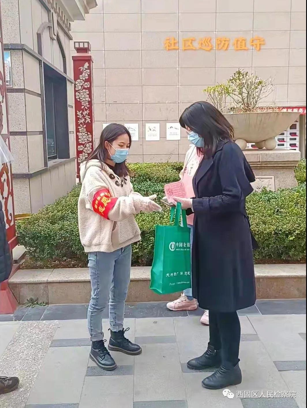 10月28日下午,刚入职的干警王琪婷在从看守所提审完成回单位的路上接到通知,参加区委组织部组织的疫情防控志愿服务工作,脱下检察服,穿上志愿红,奔赴防疫一线。10月30日晚23点,区委组织部在志愿者群内紧急通知,要求大家自愿报名参加核算信息采样工作,作为一名青年党员,毫不犹豫在群里回复了“收到”,次日凌晨6时,准点奔赴检测区,先后在兰西铁苑、新源小区开展核算检测信息采样及信息录入工作。