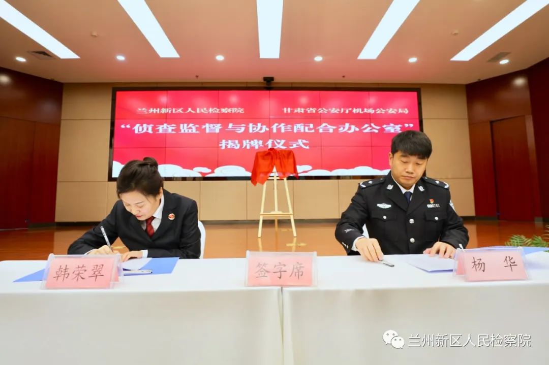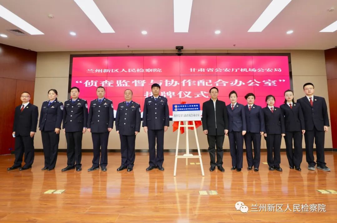 为深入贯彻落实习近平法治思想,积极推进执法司法监督制约体系,不断深化侦查监督与协作配合机制,2022年4月15日,兰州新区约彩365软件官方下载_365bet最新备用网站_365速发登录入口派驻甘肃省公安厅机场公安局“侦查监督与协作配合办公室”揭牌成立。兰州市约彩365软件官方下载_365bet最新备用网站_365速发登录入口党组成员、政治部主任周永麟、兰州新区约彩365软件官方下载_365bet最新备用网站_365速发登录入口党组成员、副检察长韩荣翠、甘肃省公安厅机场公安局党委书记、局长杨华及相关职能部门负责人参加此次揭牌仪式。