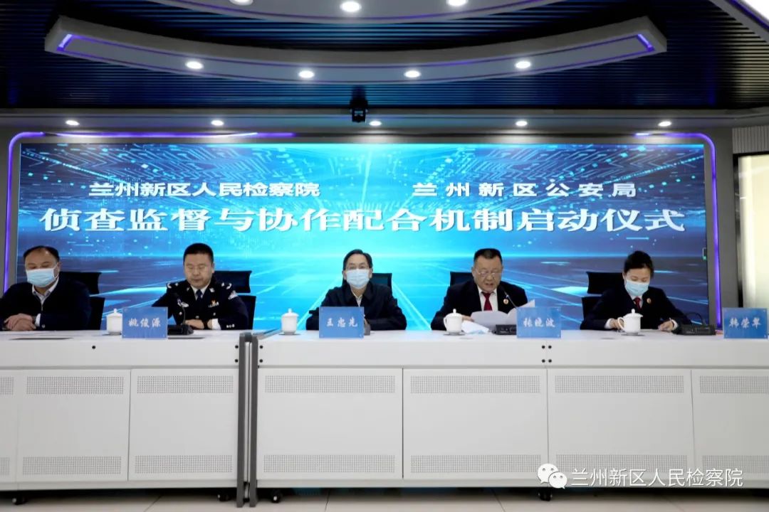 最后,王忠先同志代表兰州新区党工委发表讲话。王忠先要求,侦查监督与协作配合办公室的设立,是新区检察院、公安局深入贯彻习近平法治思想,深化刑事司法衔接的重要举措,标志着检警双方协作迈上一个新的台阶。检警双方要加强侦查监督与协作配合的主动性,秉承“双赢多赢共赢”理念,坚持统一认识、分工负责、相互理解、相互配合、相互制约的原则,充分发挥办公室枢纽作用及各自优势,加强案件会商与业务研判,深化信息共享和联合督办,推动业务共商、队伍共建、理念共融,架好“连心桥”,为建设更高水平地平安新区、法治新区做出更大贡献。