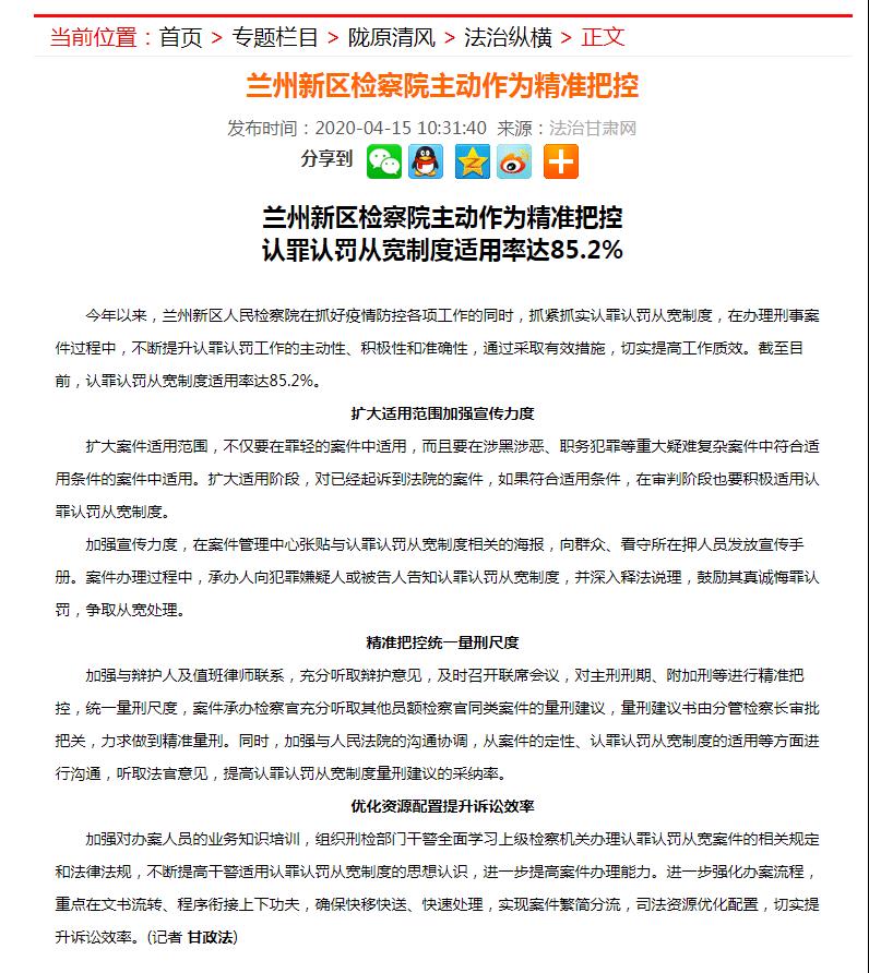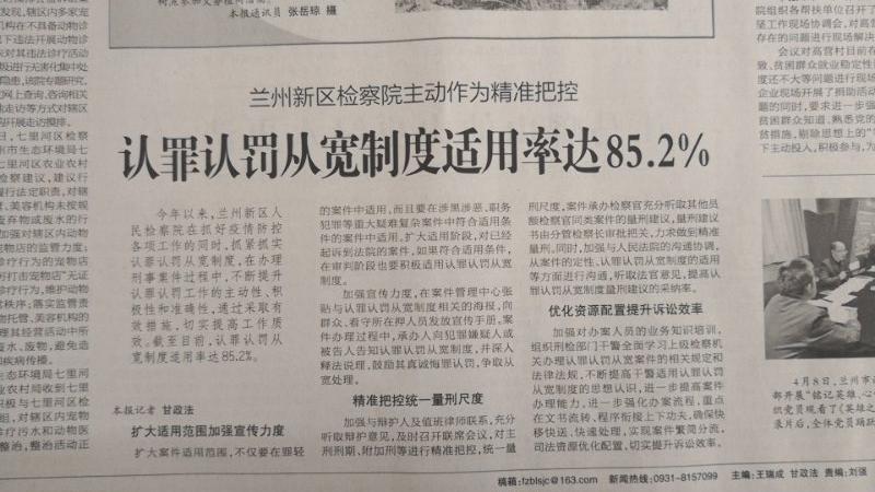 今年以来,兰州新区约彩365软件官方下载_365bet最新备用网站_365速发登录入口在抓好疫情防控各项工作的同时,抓紧抓实认罪认罚从宽制度,在办理刑事案件过程中,不断提升认罪认罚工作的主动性、积极性和准确性,通过采取有效措施,切实提高工作质效。截止目前,认罪认罚从宽制度案件适用率达85.2%。