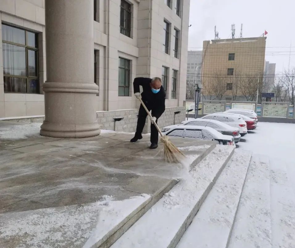 院领导亲自带头,政治部、办公室有序组织,全体干警不畏严寒,分工合作,配合默契,干劲十足。尽管户外气温很低,但为了行人、车辆的安全,干警们舞动锹铲、扫帚,努力清扫积雪。 经过大家的辛勤劳动,院内和单位门前、包抓街区的积雪清理完毕,为出行安全提供了有力的保证。