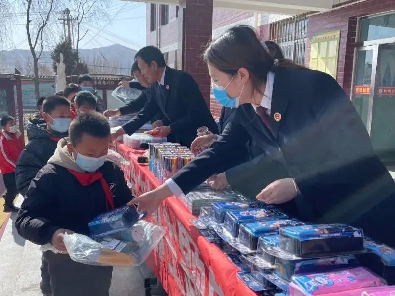 活动最后,女干警把书包、彩笔等学习用品送到孩子们手中,向他们传递了来自永登县检察院的关爱和温暖!