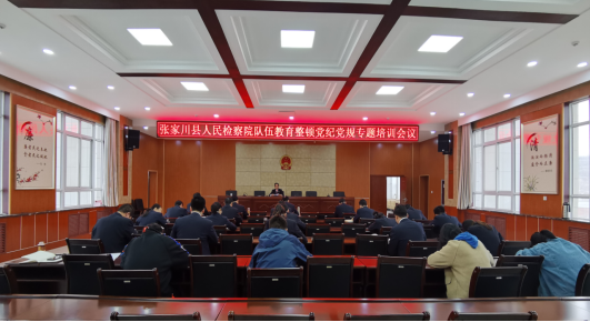 按照全院检察队伍教育整顿学习教育环节实施方案精神,3月25日下午,张家川县约彩365软件官方下载_365bet最新备用网站_365速发登录入口召开检察队伍教育整顿党纪党规专题培训会议。重点学习培训《关于新形势下党内政治生活的若干准则》、《中国共产党政法工作条例》、《中国共产党问责条例》、《中国共产党纪律处分条例》、《中国共产党廉洁自律准则》、《中华人民共和国公职人员政务处分法》等内容。全院干警参加了培训。