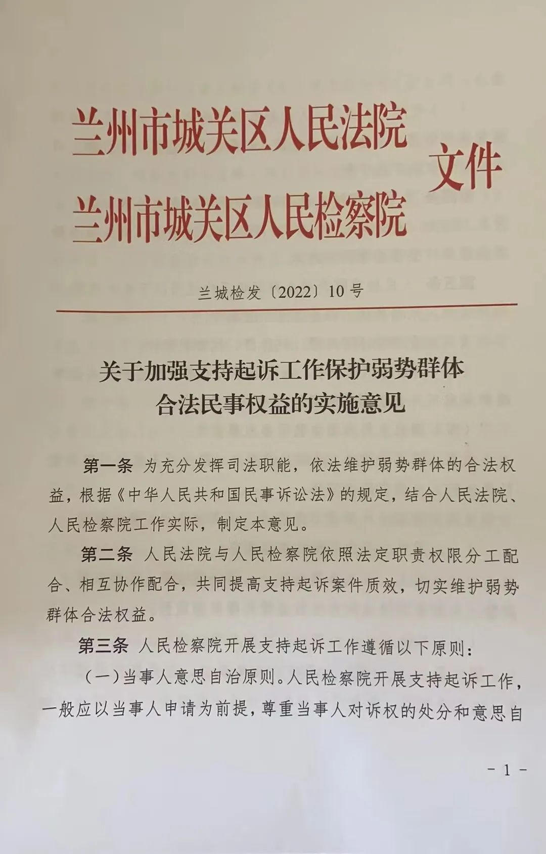 为深入践行“以人民为中心”理念,进一步凝聚法检民事支持起诉工作合力,切实保障弱势群体合法权益,近日,城关区约彩365软件官方下载_365bet最新备用网站_365速发登录入口与法院共同签发《关于加强支持起诉工作保护弱势群体合法民事权益的实施意见》,推动民事支持起诉工作规范化、制度化、长效化发展。