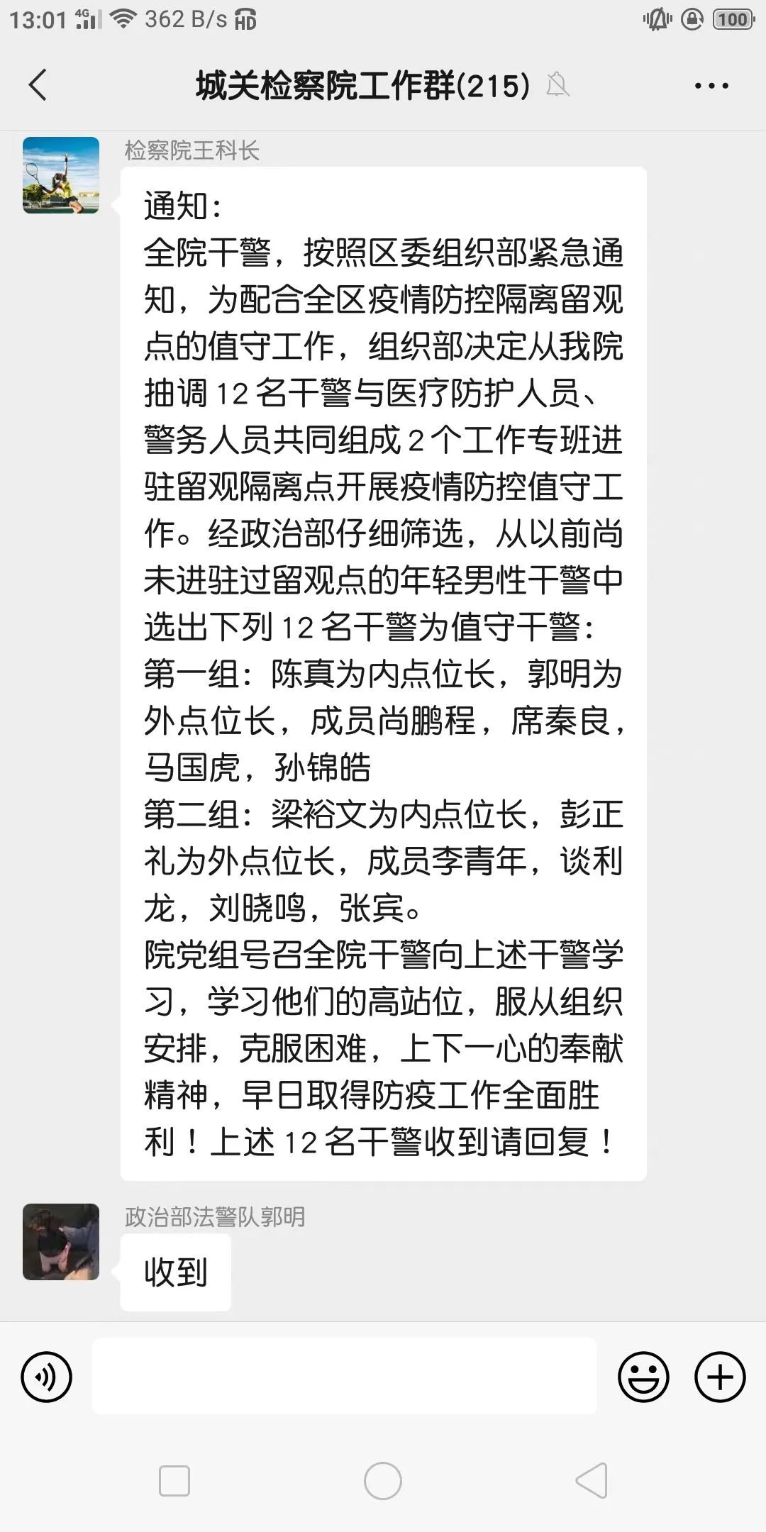 政治部、办公室紧盯疫情防控发展态势,认真执行疫情防控“日报告、零报告”制度,全面掌握干警健康码异常情况,及时做好上情下达、下情上报工作,确保底数清、情况明。针对疫情防控等紧急事件,建立即时报告、即时处置工作机制,切实履行好疫情防控工作职责。