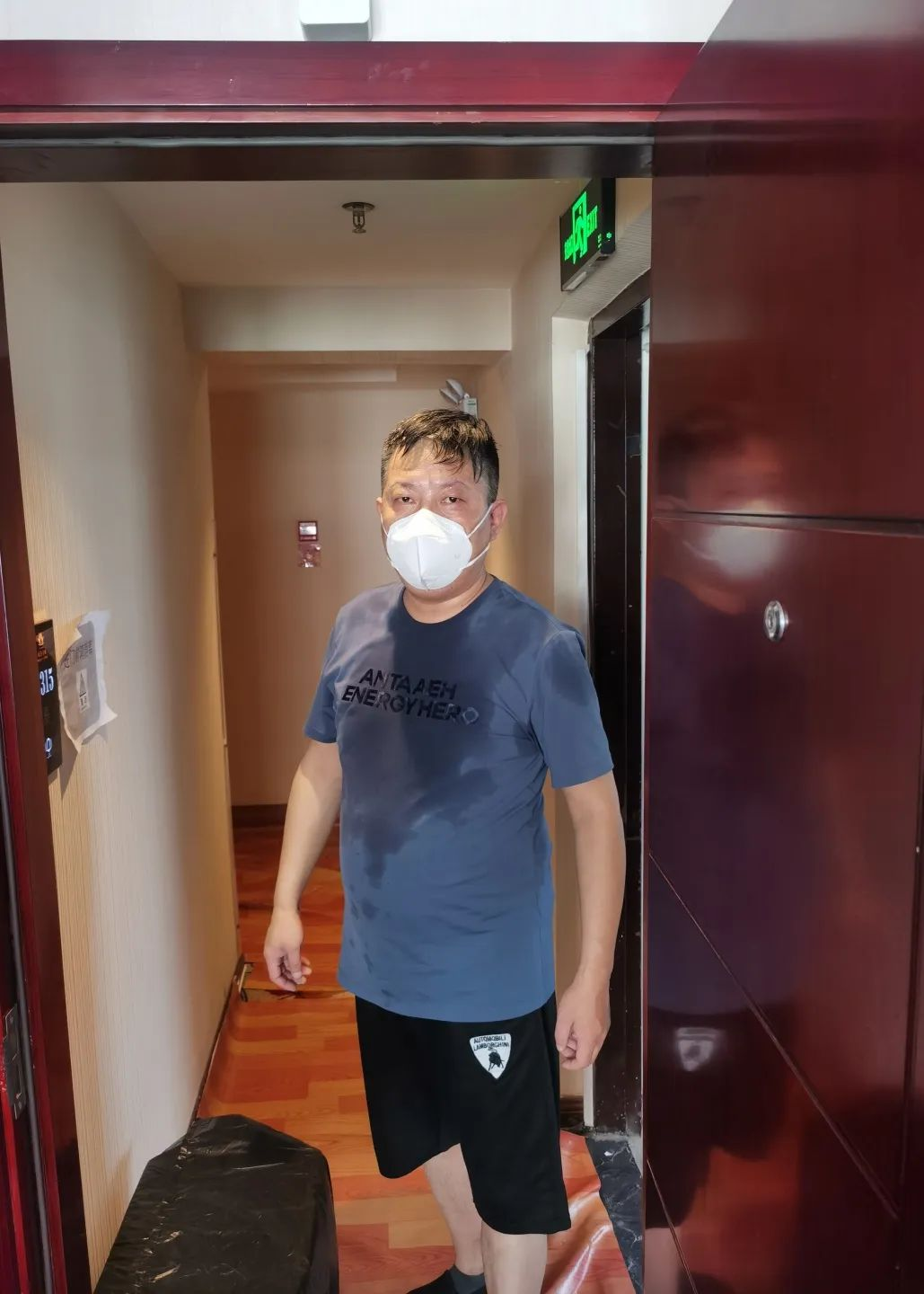 高温下,他们穿着密不透气的防护服,背着40斤重的消毒箱,穿梭于20余层高的楼层间,每一次的消杀,足以让他们汗如雨下、体力透支。心中有信仰,脚下有力量,他们心中坚定的信念使瘦弱的身躯不但没有被压垮,却撑起了所有被隔离人员的安全,他们一次次消杀时的背影总是显得那么伟岸,因为他们肩上扛的是责任和担当。