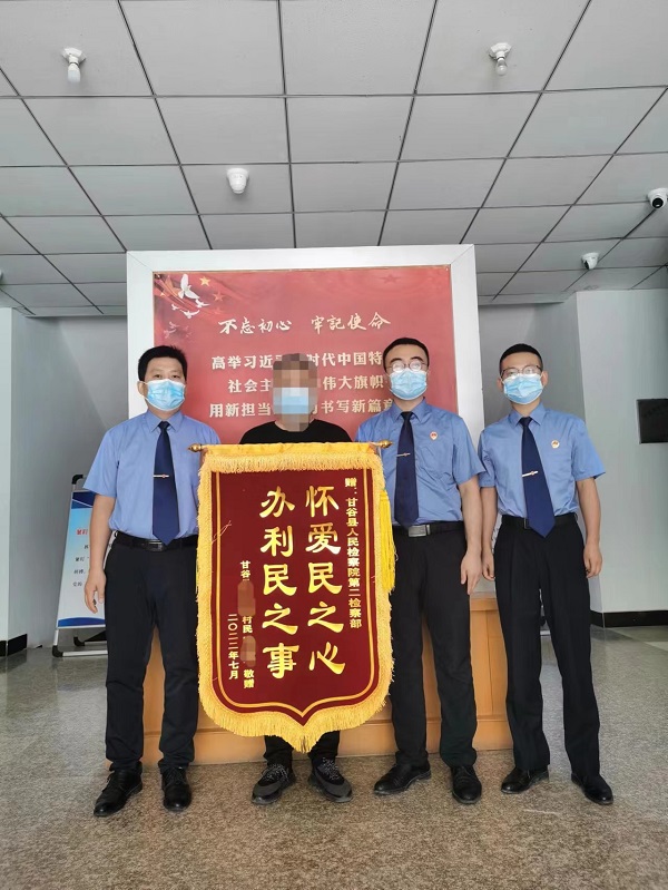 近日,甘谷县某镇村民尉某来到甘谷县约彩365软件官方下载_365bet最新备用网站_365速发登录入口,赠与“怀爱民之心、办利民之事”锦旗,向在办理一起行政监督案中,检察机关公正高效办理案件和用心用情司法暖民举措,表示真诚感谢。