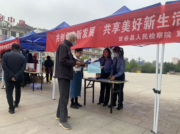 为引导社会各界共同参与食品安全治理,营造共建共治共享新格局,9月14日,甘谷县检察院在大像山公园参加由县食品安全委员会办公室组织的以“共创食安新发展 共享美好新生活”为主题的食品安全宣传周启动仪式。