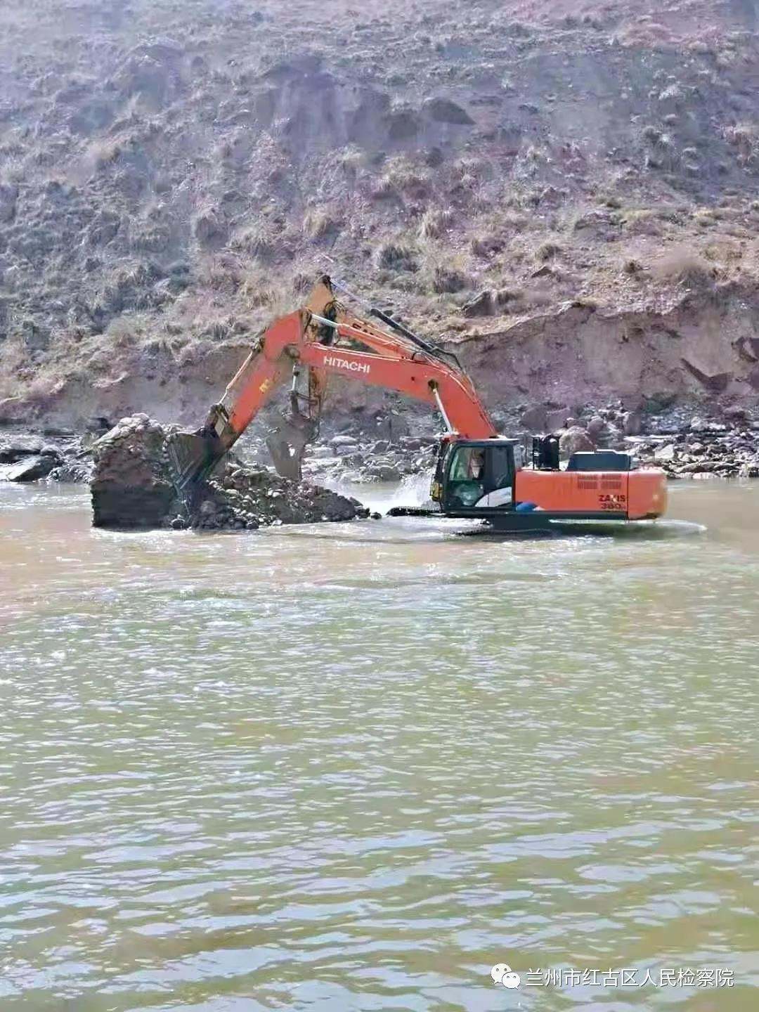 2021年2月23日,随着挖掘机轰隆隆的响动,湟水河河道窑街矿务局双氰胺厂废弃厂区段中的大石头被破碎、清理,这也宣告着红古民和联合办理的首起公益诉讼案件圆满办理。