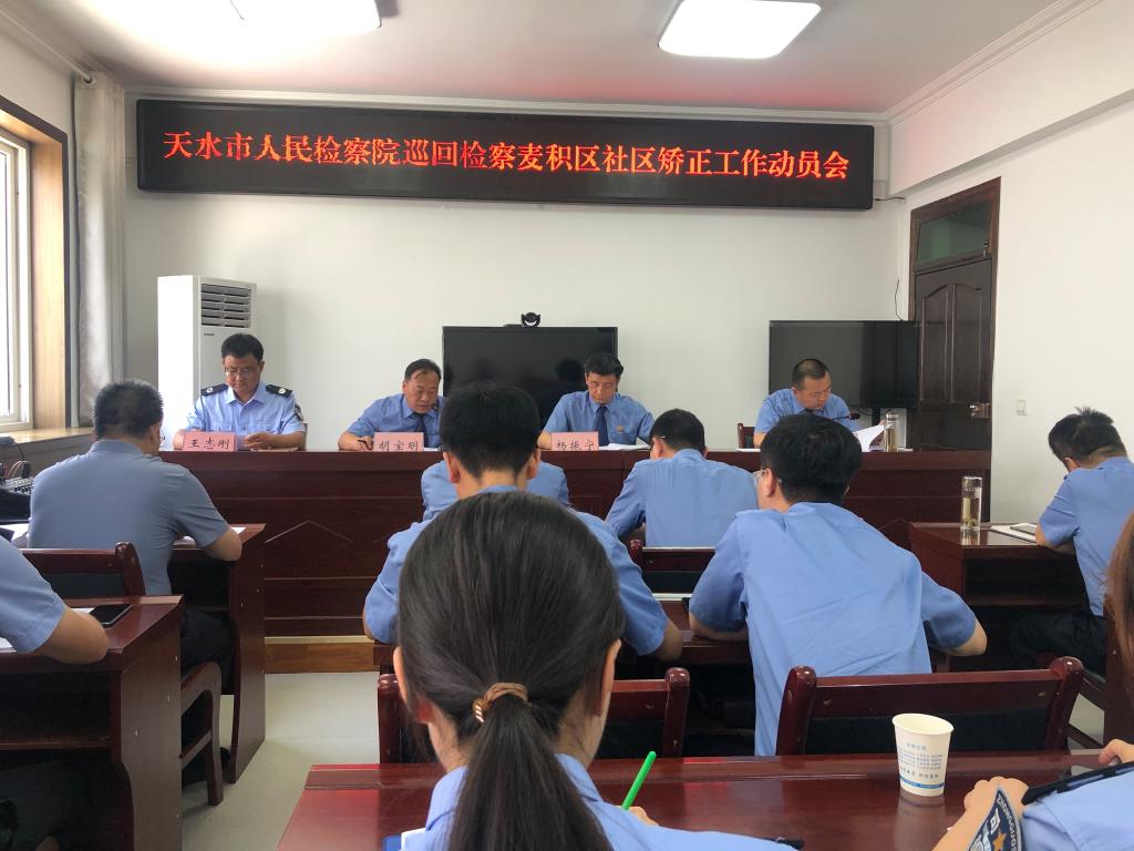 动员部署大会在区司法局召开,巡回检察组副组长胡宝明宣读了《天水市约彩365软件官方下载_365bet最新备用网站_365速发登录入口社区矫正巡回检察工作方案》,副组长杨振宁做了动员讲话,麦积区院分管检察长贾虎胜、区司法局分管局长王志刚分别做了表态发言。