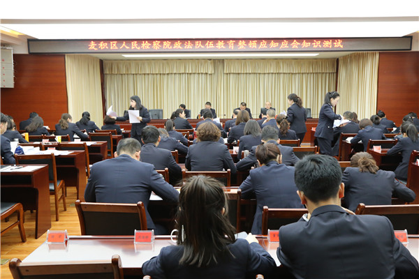 为推动政法队伍教育整顿走深走实,4月19日上午,麦积区检察院组织全体人员开展政法队伍教育整顿应知应会知识测试。