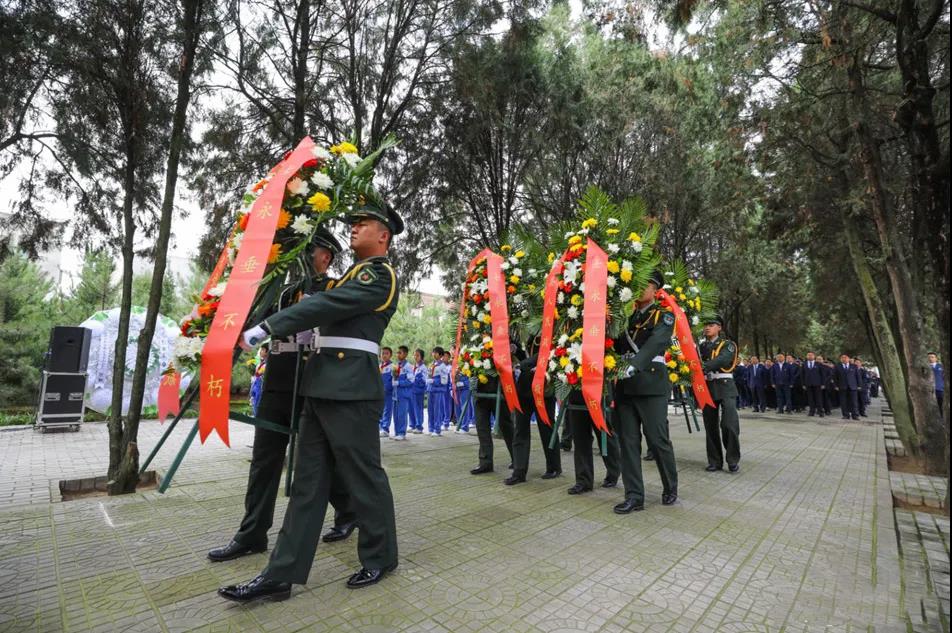 仪式上,在雄壮的国歌声后,全体人员肃立,向烈士默哀。少先队员献唱《我们是共产主义接班人》、秦安代县长王龙强致悼念哀辞,礼兵向烈士敬献花篮。随后,全体参加烈士公祭仪式人员向烈士行三鞠躬礼,并依序瞻仰烈士陵墓并敬献鲜花,以表深沉的悼念。