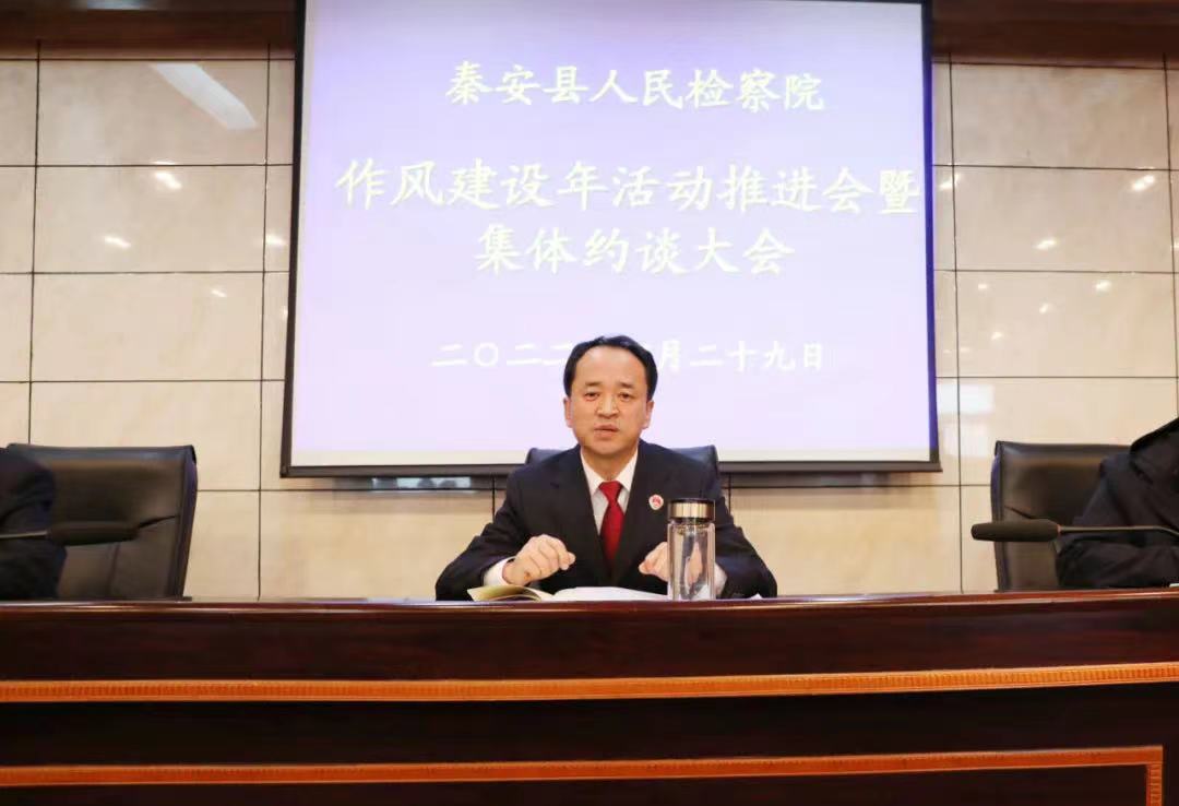 为深入推进“强作风、优服务、抓落实、促发展”作风建设年活动,助力各项检察业务工作提质增效。4月29日上午,秦安县检察院组织召开作风建设年活动推进会暨集体约谈大会,会议由党组成员、副检察长张生孝主持,党组书记、检察长张春强出席并讲话,全体干警参加。