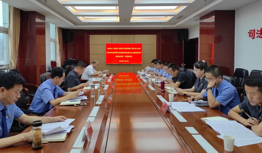 为深入贯彻落实习近平法治思想,进一步统一执法理念,不断提升执法办案效率和质量,近日,秦安县约彩365软件官方下载_365bet最新备用网站_365速发登录入口与县法院、县公安局联合召开办理毒品犯罪案件和电信网络诈骗及其关联犯罪案件联席会议,县检察院党组书记、检察长张春强及一线员额检察官参加了会议。