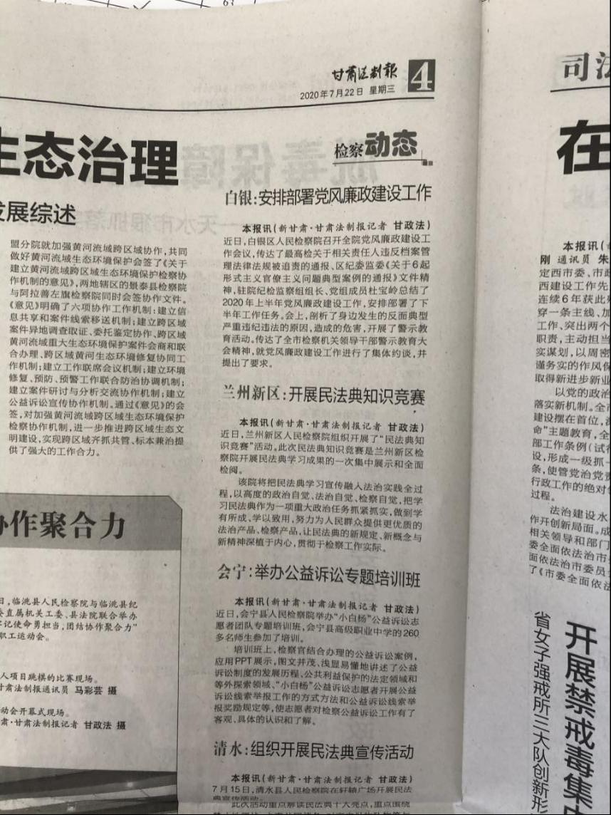 《中华人民共和国民法典》是新中国第一部以法典命名的法律,开创了我国法典编纂立法的先河,具有重要里程碑式意义。为深入贯彻落实习近平总书记关于广泛开展民法典普法工作的重要指示,推动检察干警结合履职实践学好民法典,7月14日,兰州新区约彩365软件官方下载_365bet最新备用网站_365速发登录入口组织开展了“民法典知识竞赛”活动。