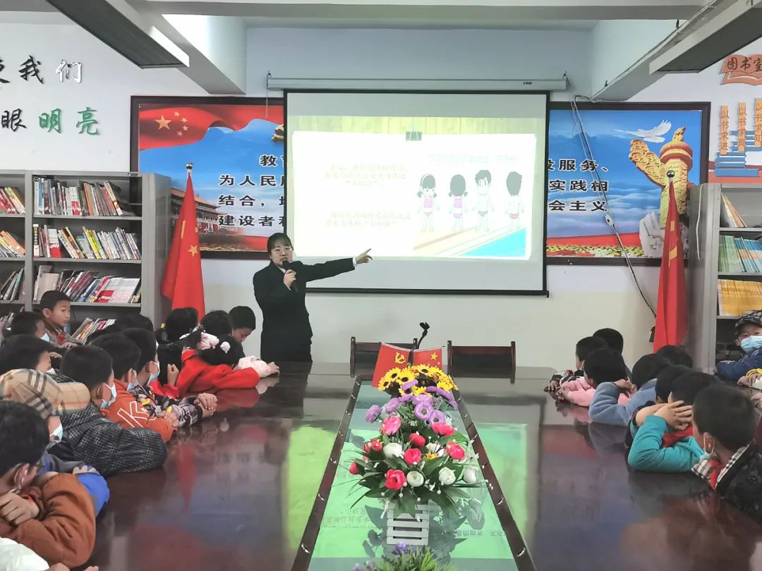 为进一步增强少年儿童法律意识,提高自我保护能力,未检干警为师生上“开学第一课”。